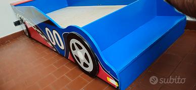 Letto per bambini a forma di auto, completo di materasso . Dimensioni della struttura 190x85