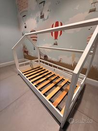 Letto a casetta bianca per bambini in legno laccato bianco poro aperto cm 165 X 85 cm comprensivo di materasso in ottimo stato . Ritiro a scafati , smontato