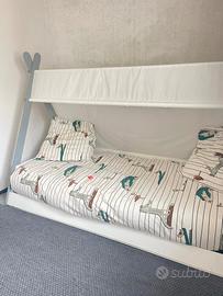 Comprende anche , come da foto , materasso praticamente nuovo, copri piumone con federe e 2 cuacini.