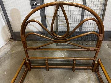 Questo è un letto ad una piazza e mezzavintage in stile bohémien realizzato in bambù tipico del design italiano degli anni '60/'70. Misure rete 190x110