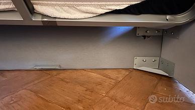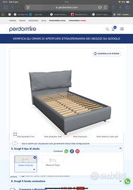 Vendo letto perdormire 120x200 (una piazza e mezza). Il tipo di tessuto é "Lucky star, Dark Gray 27". Il letto non è stato utilizzato, avendolo immediatamente sostituito, poiché durante il montaggio effettuato dall'azienda é stato causato un piccolo difetto estetico in una giuntura, come da foto. Il problema non compromette la stabilità della struttura e può essere tranquillamente utilizzato. Il prezzo del letto é scontato del 70% rispetto a quello originale (960€)