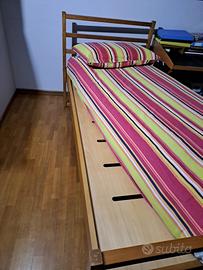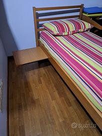Letto singolo in legno con comodino estraibile Rete in legno Completo di materasso Lunghezza 205 Larghezza 96 Trasporto a carico dell'acquirente