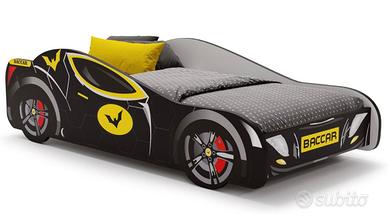 Vendo letto per bambini a forma di auto sportiva, colore nero con dettagli gialli, nuovo e mai utilizzato.