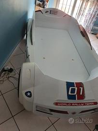 Letto per bimbi a forma di auto da corsa, in buone condizioni sono consumati gli adesivi dovuti a sfregamento . La struttura integra.