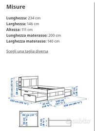 Vendo letto ikea contenitore con 4 cassetti — motivo della vendita: troppo grande per la mia stanza, tenuto in modo perfetto. Modello letto: Brimnes; Materasso Hovag misura 140x200; Toghe Lonset;