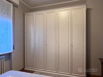 Vendesi elegante armadio, ideale per ottimizzare lo spazio in camera da letto o nella stanza degli ospiti. Il mobile presenta una finitura in laccato bianco opaco, facile da abbinare a qualsiasi stile d'arredo. Dettagli e Dimensioni: Colore: Bianco Opaco (finitura laccata) Altezza: 256 cm Lunghezza: 258 cm Profondità: 61 cm Ottimo stato
