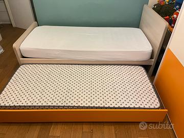 Vendo letto camera ragazzo con letto aggounto in doghe di legno.
