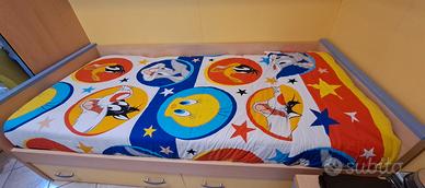 Letto x cameretta con doghe, materasso e 2 cassettoni sotto.