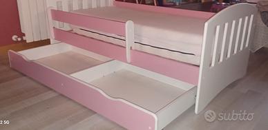 Letto / cameretta bimbo con sponda anti caduta universale che puo' essere montata su entrambi i lati. il letto puo' essere montato sul lato dx o sx cosi' come il cassetto. Accoglie materasso standard 160x80cm . Dimensioni come da immagine 164Lx85lx65H cm. Materiale legno , poliuretano e PVC. Condizioni pari al nuovo. Vendo anche materasso nuovo Phaserem a parte (prezzo 90euro) dimensioni 70x150cm spessore 20cm