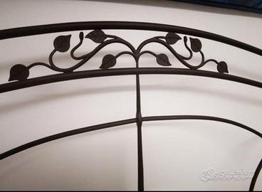 letto matrimoniale Cantori in ferro battuto completo di rete e due comodini con piano in marmo rosa Perlino e vetro
