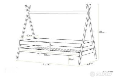 Vendo letto Tenda Tipi 200x90 in legno di pino naturale colore bianco con materasso. Ottime condizioni pari a nuovo Disponibile da fine Marzo