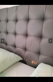Letto contenitore capitonnè in ecopelle. Testata un pò rovinata ma il resto in ottime condizione. Si vende con rete ma senza materasso.