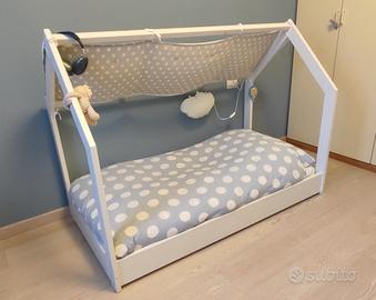 Letto casetta in legno - montessoriano Stile scandinavo nordico Doghe in legno Misure 166 x 88 x 123 cm Materasso 160 x 80 NON incluso