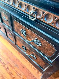 •Maniglie originali in metallo lavorato, dal design decorativo e raffinato, coerenti con l’epoca