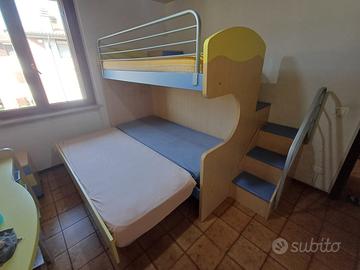 Vendo letto a castello con scala contenitore e terzo letto estraibile. (ESCLUSI materassi e mensola a muro) Rete a doghe in legno.