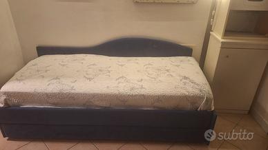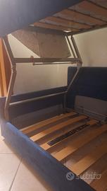 Letto a castello a doghe e struttura in ferro robusto, con molle che fungono da aiuto llnella apertura e chiusura. Presente leva di sicurezza per il fissaggio. Compreso un materasso. Possibile visione previo appuntamento