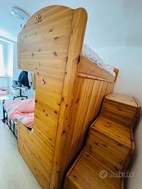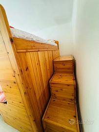 vendo letto a castello legno..senza letto sotto.. *Scala contenitore* con 3 pratici scomparti per riporre ogget…