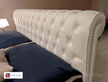 Letto matrimoniale imbottito in Pelle fiore Bianca modello Chester Chesterfield capitonné , prodotto artigianale con struttura interamente in legno.