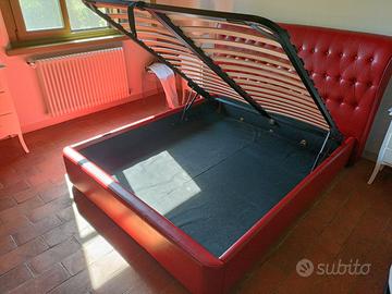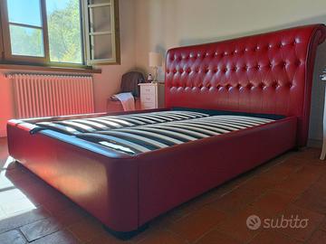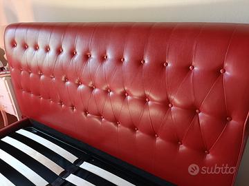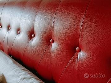 La lavorazione capitonné della testata del letto chesterfield copre tutta la superficie frontale e termina sul retro nella parte superiore. Le facce laterali sono impreziosite da pieghe sul rivestimento curate singolarmente nel dettaglio e da una mascherina in legno tappezzata.