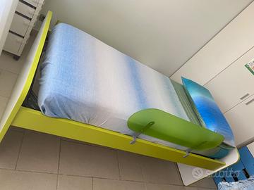 Vendo letto della Colombini, modello muvi con ruote, colore bianco e cedro, comprensivo della sponda a di protezione in resina, originale Colombini. Il letto possiede le doghe in legno.
