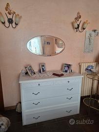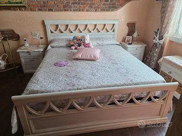 ottimo letto 4 anni di vita completo di materasso ortopedico con rete a doghe come nuovo alto 22cm più 2 comodini e como colore avorio finitura dorata misure letto larghezza 175 lunghezza 210 como larghezza 118 altezza 84 profondità 53 comodini 52 larghezza 40 prondita altezza 56