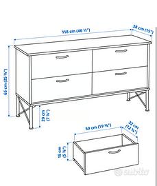 Letto Hemnes per materasso 160x200cm Comó Musken 2 comodini Musken Dimensioni in foto.