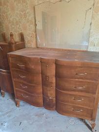camera da letto vintage originale anni 40 composta da letto matrimoniale in radica, comodini, como' cassettiera 4 cassetti con specchio. da pulire ma in ottimo stato. vendibili anche separatamente. comodini 20 €, como' 60€, letto 70€. solo ritiro o spedizione organizzata dal cliente
