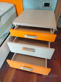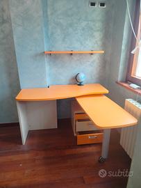 Vendo letto singolo mis.213x100 con rete e materasso mis.200x90x24 pari a nuovo, comodino con tre cassetti, scrivania mis.135x64 con doppio ripiano rotante mis.128x69 con cassettiera. La scrivania ha una rientranza a sinistra di 43,3x15 perché adattata ad un pilastro dove poggia. Sedia arancione con ruote girevoli. Marca Colombini. Prezzo proposto se preso tutto insieme. Pezzi vendibili anche separatamente. Ritiro a carico dell acquirente