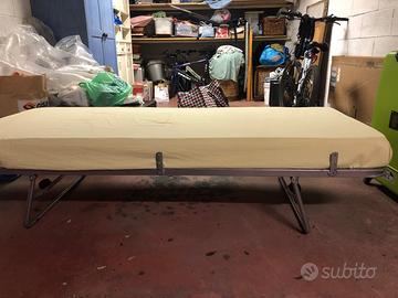 Letto con gambe pieghevoli con rotelle e con materasso in ottime condizioni