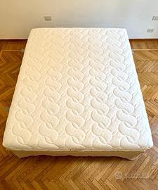 Letto matrimoniale massimo confort come nuovo, quasi mai usato. Materasso di alta qualità One by Tempur in memory foam, imbottitura antiallergico, sfoderabile con coprimaterasso incluso in medio sostenuto. Base di Dorsal Ergo anatomico consigliato dai fisioterapisti con zona spalle ammortizzata e sospenioni attive in Hytrel per polpalci e piedi. Supporto anatomico in faggio multistrato con doghe di legno di sospensioni attive e gonna rimuovibile di cotone con velcro color écru. Testiera tappezzata in tessuto rigato in bianco e écru dimensioni 165 x 52 cm.