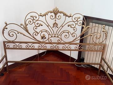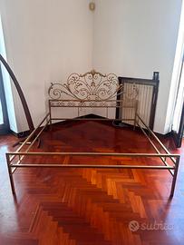 Letto antico, creato in ferro battuto a mano, pittato con color oro ducato.