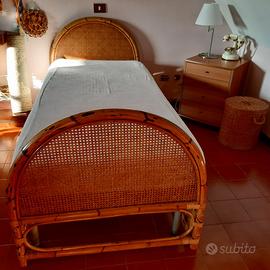 Letto in vimini a una piazza. Molto bello, elegante e robusto: condizioni perfette. E' corredato di un rete in doghe da 90cm e anche un materasso in memory praticamente nuovo.