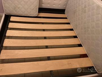 I materassi e la rete sono stati usati pochissimo, la testata la regalo perchè nel tenerla ferma con il tempo mi si è rovinata nella parte superiore, ma è possibile ricoprirla. Vendo il tutto a 100 euro ma disponibile a vendere qualcosa anche singolarmente. In concreto 2 materassi a 50 euro, rete in doghe matrimoniale a 50 euro.