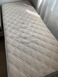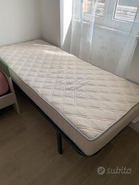 Letto singolo completo, composto da una struttura in metallo resistente e un materasso comodo di dimensioni standard.