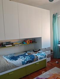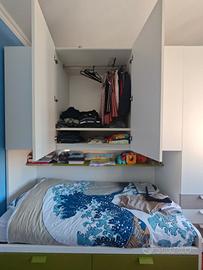 letto con cassettoni e armadio a ponte