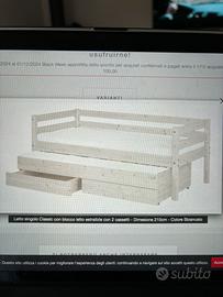 Letto singolo, dotato di due ampi cassettoni e secondo letto estraibile.