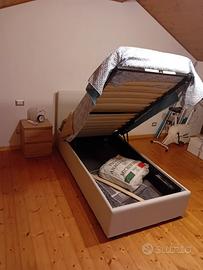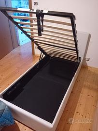 Vendo letto singolo bianco in semipelle imbottito con cassone contenitore, tenuto benissimo, perfetto vendo solamente per aumento statura di mio figlio