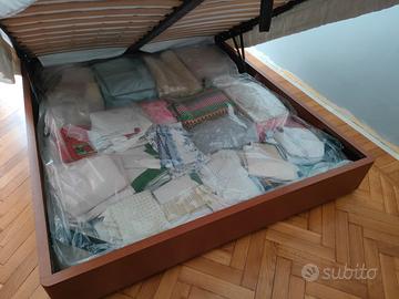 letto con contenitore, in legno colore ciliegio, doghe, dim. 180x205 cm, adatto a materassi da 190 o 195 cm, causa nuovo arredamento vendo, acquistato da mobilificio serio a Santena . Smontaggio e trasporto a carico dell'acquirente , libero tra circa 30 GG.