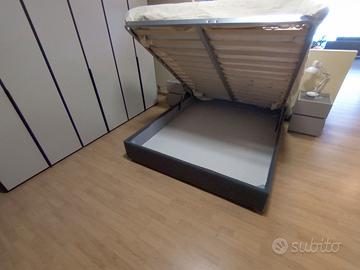 Letto matrimoniale con contenitore completo di rete. Rivestimento sfoderabile. Materasso non incluso.