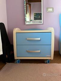 Letto in ottime condizioni, completo di letto estraibile con materasso nuovo (mai usato). Colore acero e azzurro (cristallo). Marca Moretti Compact.