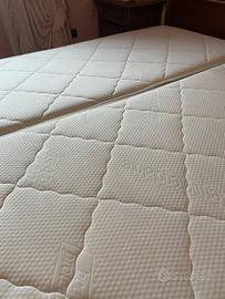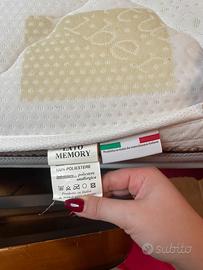 Vendo letto in legno + due materassi singoli Made in Italy altezza 21 cm (80x190cm) in memory e in buonissime condizioni (segno giallo dovuto all’etichetta del materasso) + rete matrimoniale come nuova (dorsal). No spedizione, ma ritiro.
