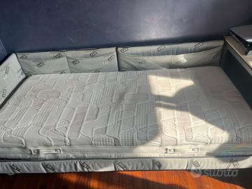 la struttura è 102x210 con testiera e 4 tasche laterali 4 ruote con blocco materasso in memory foam sfoderabile (usato) letto è sfoderabile e lavabile per il trasporto il letto è smontabile Non disponibile alla spedizione, solo ritiro sul posto