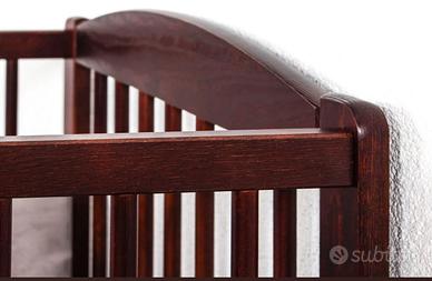 Letto con materasso, colore marrone scuro, con materassino in schiuma.