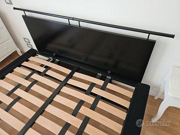 letto con rete a doghe e testata in legno