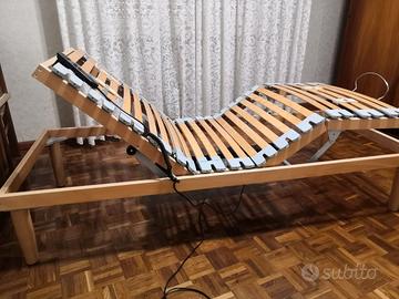Vendo letto singolo con rete in doghe motorizzata. Dispositivo CE. Telecomando per alzare spalle o piedi o entrambi contemporaneamente. Ferma materasso sui piedi e lateralmente.