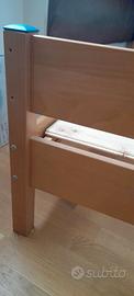 Letto gioco con scivolo della ditta tedesca Paidi, completo di tendine e vela, in legno di faggio massello, doghe robuste in abete, attualmente usato da un adolescente, completo di tutti gli accessori per trasformarlo in letto-gioco per bimbi 3+ anni.