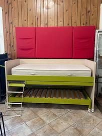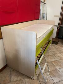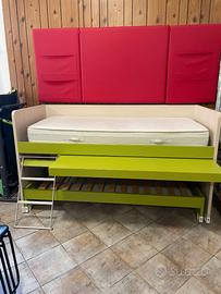 Letto per ragazzi con due reti a doghe e scrivania incorporata ingombro cm 210x88x120H e misura scrivania cm 155x55x72H