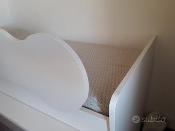 vendo per inutilizzo, letto COLOMBINI serie Golf, bianco, con secondo letto estraibile, scrivania estraibile con cassetto scrivania e 2 cestoni estraibili con ruote.
