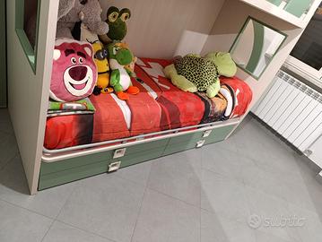 passatoia contenitore per salire . Colore salvia e frassino effetto nuvola, materasso nuovo per il letto superiore e come nuovo letto inferiore. I materassi sono tutti e due Memory qualità superior modello Mlily. praticamente nuovi.