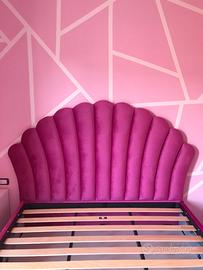 Realizziamo letti tappezzati di qualunque modello. Diamo la possibilità di personalizzare il proprio letto come si vuole. Il letto in oggetto è dotato di contenitore, realizzato interamente in multistrato, pannelli laminati lavabili e tessuto in velluto.
